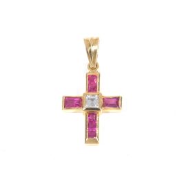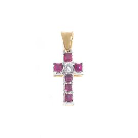 di cui uno in oro giallo 18kt, impreziosito da rubini taglio carré e baguette per ct 0.40 circa, con al centro un diamante taglio carré di ct 0.20 circa, dim. cm 1x2 circa, accompagnato da un secondo ciondolo in oro giallo e bianco 18kt, impreziosito da rubini taglio carré per ct 0.70 circa, con al centro un diamante taglio brillante di ct 0.10 circa, dim. cm 1x2, gr. 4 complessivi circa