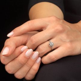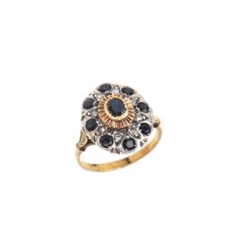 di cui uno in oro e argento, impreziosito da zaffiri taglio rotondo per ct 0.80 circa e rose di diamante, mis. 57, accompagnato ad un secondo anello in oro bianco 18kt, impreziosito da un diamante taglio brillante di ct 0.40 circa, affiancato da piccoli diamanti taglio huit huit (uno mancante), mis. 55, gr. 8 complessivi circa