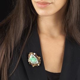SPILLA A FORMA DI TRALCI CON GIADA PERLE E PIETRE SEMIPREZIOSE