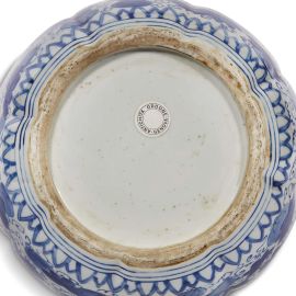 in porcellana dipinta in monocromia blu. Sul fondo etichetta Antichità Oddone, Genova; alt. cm 20, diam. bocca cm 10,5