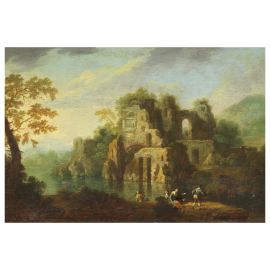 RIVER LANDSCAPE WITH RUINS AND FIGURES