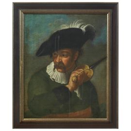 MALE PORTRAIT WITH FEATHER HAT AND A SMALL SWORD