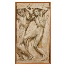 Le due figure maschili dalla muscolatura longilinea e nervosa tipicamente sartoriana costituiscono un inedito studio per un particolare del ‘Fregio della Sala del Lazio’, ovvero il ciclo eseguito da Sartorio a ornamento della sala della propria regione per l’Esposizione Internazionale di Milano del 1906 a celebrazione dell’apertura del Valico del Sempione.