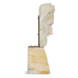 L’opera sembra strettamente concepita con il suo supporto sia per la ricerca di contrasto cromatico sia per la precisa delineazione del mento studiato per adattarsi alla base in marmo giallo.