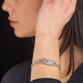 in oro bianco 14kt, impreziosito da diamanti taglio vecchio per ct 1.40 cica, lungh. cm 18, gr. 19