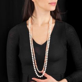 DUE LUNGHE COLLANE CON PERLE E CORALLI ROSA