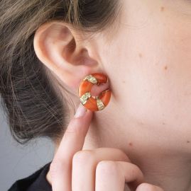 PAIO DI ORECCHINI CON CORALLI E DIAMANTI