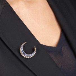 SPILLA A FORMA DI SEMILUNA CON ZAFFIRI E DIAMANTI