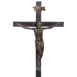 Questo esemplare, ascrivibile alla produzione seicentesca del Centro Italia, trova affinità con i modelli di Antonio Susini, Giovanni Francesco Susini e di Ferdinando Tacca. Il Cristo è qui rappresentato nella tipologia triumphans. La particolare resa del corpo del Cristo, con i bicipiti esili, la lavorazione delle vene vene sulle braccia tese, il costato ben visibile, la tipologia di aureola polilobata e traforata così come anche la struttura lignea, che vede il crocifisso di forma allungata e poggiante su base intagliata con plinti e balaustri a tutto tondo, conferma la sua derivazione toscana, che trova a sua volta ispirazione nel crocifisso del Giambologna della Santissima Annunziata.