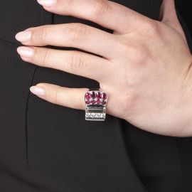 ANELLO A FASCIA CON RUBINI BIRMANI E DIAMANTI