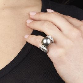 ANELLO CON PERLA GRIGIA SOUTH SEA E DIAMANTI