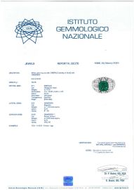 in oro bianco 18kt, con al centro uno smeraldo colombiano taglio ottagonale di ct 4.79, circondato da diamanti taglio baguette per ct 1.30 circa e da diamanti taglio brillante (di cui due sintetici) per ct 2.60 circa, punzoni 750 e del fabbricante, mis. 53, gr.18. Corredato di certificato IGN del 08/03/2023 attestante le caratteristiche e l'origine della pietra.