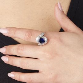SAPPHIRE AND DIAMOND RING IN 18KT WHITE GOLD