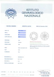 in oro bianco 18kt, con diamante taglio brillante di ct 3.42, colore M, purezza Vvs1, punzoni 750 e del fabbricante, mis. 52, gr. 4. Corredato di certificato IGN del 22/11/2022 attestante le caratteristiche.