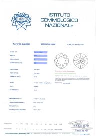 in oro bianco 18kt, con diamante taglio brillante (smontato) di ct 5.02, colore G, purezza Vvs1, punzoni 750 e del fabbricante, mis. 50, gr. 4. Corredato di certificato IGN del 22/03/2023 attestante le caratteristiche.