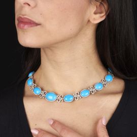 TURQUOISE AND DIAMOND NECKLACE IN 18KT WHITE GOLD