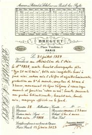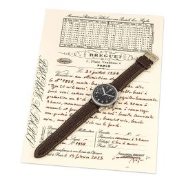 According to the records of the parent company, the chronograph Breguet No. 7858 is a "Military Type 20" delivered to the French Ministry of Aeronautics on 31 July 1957.The case back shows several dates, which correspond to the revisions that the timepiece has received throughout history.