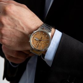 cassa in acciaio, fondello a vite, corona marcata e tasti a pompa, quadrante salmone firmato IWC con scala tachimetrica sul disco rehaut, indici applicati, datario con finestra della data e del giorno a ore tre, contatore dei secondi a ore nove, contatore dei minuti a ore dodici, contatore delle ore alle sei, movimento a carica automatica cal C79230, bracciale originale a maglie in acciaio satinato e lucido, chiusura deployant a scomparsa marcata IWC, vetro minerale. Diam. mm 43.