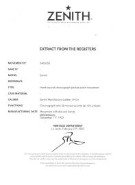 ZENITH OROLOGIO DA TASCA CRONOGRAFO MONOPULSANTE N. 24653XX