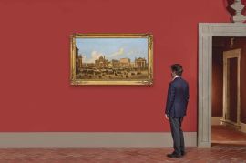 L’autore della cristallina veduta di Piazza San Pietro presentata in catalogo è il pittore Vincenzo Giovannini, trasferitosi giovanissimo da Todi a Roma. Formatosi dunque nella Capitale frequentando i corsi di disegno e pittura presso l’Ospizio di San Michele, l’artista, nonché abile copista, si specializzò presto nella pittura di vedute, assai richiesta da mercanti e in grado di esercitare un intramontabile fascino sui viaggiatori.