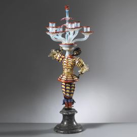 in vetro policromo con base in marmo, raffigurante moro