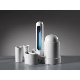 in metallo laccato nei toni del bianco e plastica nei toni del blu