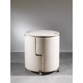 «DILLY DALLY» TOILETTE, WODDEN AND PLASTIC MATERIAL STRUCTURE, WHITE LEATHER UPHOLSTERY