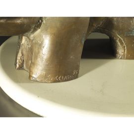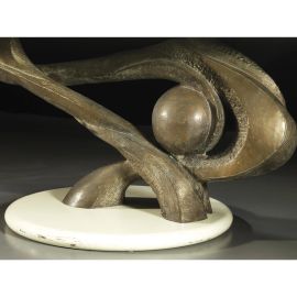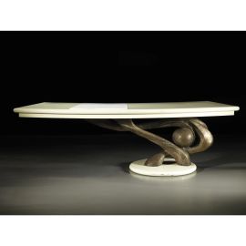 scrivania piano in legno laccato bianco e struttura in bronzo