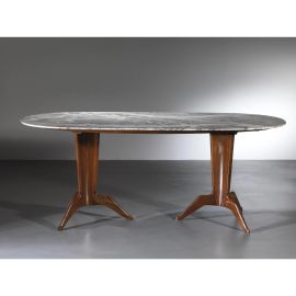 TABLE, WOODEN STRUCTURE, MARBLE TOP