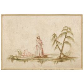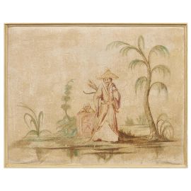 tempera su tavola, decorati a cineserie; cm 66x101,5; 67x100; 67x85; 67x85; 71x85,5, (ogni cornice misura cm 2 per ciascun lato)