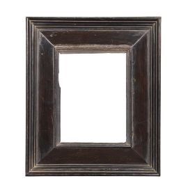 in legno ebanizzato, battuta si porta su fascia centrale che scende a muro con più ordini di gole; ingombro cm 24,5x21,2, luce cm 13,8x10,3
