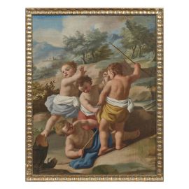 coppia di dipinti, olio su tela, cm 83,5x65; 83,5x68,5