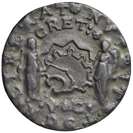 Pb mm. 46 ALOY MOCEN P V D IO IO TRIVMPH Testa a s. in rilievo R/ LIBERAT NVTRIT CRET MDCL V C Pianta della fortezza di Candia Rif: Volt. 945 (riporta solo esemplari in bronzo)