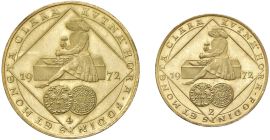 CECOSLOVACCHIA. REPUBBLICA SOCIALISTA (1960-1990). ZECCA DI KREMNITZ. SET DI DUE MONETE IN ORO (2 E 4 DUCATI 1972) DELLA SERIE “KUTNÀ HORA” IN ASTUCCIO ORIGINALE DI LEGNO CON INCISIONI IN ORO