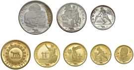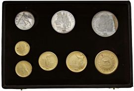 EMIRATI ARABI UNITI RAS-AL-KHAIMAH. SAQR BIN MUHAMMAD AL-QUASIM (1948-2010). SERIE COMPLETA DI OTTO MONETE A CORSO LEGALE (200, 150, 100, 50, 75 RIYALS IN ORO; 15, 10, 7,5 RIYALS IN ARGENTO) PER LA CELEBRAZIONE DEL CENTENARIO DI ROMA CAPITALE (1870-1970) IN ASTUCCIO ORIGINALE E CERTIFICATO DI EMISSIONE