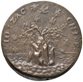 Ae mm. 65 FANTINVS CORNELIVS AB EPISCOPIA Busto a d. con capelli lisci e barba, veste la toga R/ IO ZACCHI F Un albero sulla roccia in un mare in tempesta. Rif: Volt. 292; Hill 1914.
