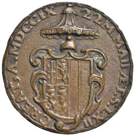 Ae mm. 50 IOANNES CORNELIVS DVX VENET Busto a s. con corno e mantello dogali. Cornice modanata R/ CREAT A MDCCIX 22 M MAII AET S LXII Stemma barocco Corner con corno dogale e ombrello Rif: Volt. III, 1352