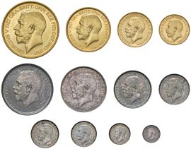 GRAN BRETAGNA. GIORGIO V (1910-1936). PROOF SET, LONDON MINT. CORONATION. 5 POUNDS (Au), 2 POUNDS (Au), SOVEREIGN (Au) E HALF SOVEREIGN (Au), HALF CROWN (Ar), FIORINO (Ar), SHILLING (Ar), SIXPENCE (Ar) E MAUNDY SET (Ar, 4 pz.). CON LA CUSTODIA ORIGINALE DI PRESENTAZIONE BORDEAUX E FREGI IN ORO