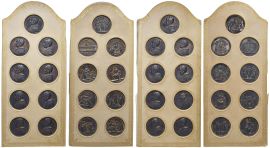 PAPALI. LEONE XIII (1878-1903). IMPORTANTE RACCOLTA COMPLETA DI TUTTE LE VENTISETTE MEDAGLIE IN ARGENTO DELLA VITA DI QUESTO PONTEFICE (DALL’ANNO I ALL’ANNO XXVI) IN CONSERVAZIONE FIOR DI CONIO E CON STRAORDINARIA PATINA IRIDESCENTE RACCHIUSA IN ELEGANTE ESPOSITORE COLOR AVORIO CORREDATO DA FREGI IN ORO E BLASONE DI PAPA PIO X (SUCCESSORE DI LEONE XIII) NEL FRONTESPIZIO