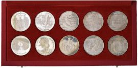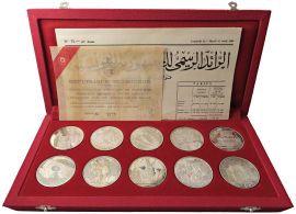 TUNISIA. REPUBBLICA (DAL 1957). PROOF SET COMPOSTO DA DIECI MONETE IN ARGENTO 925 DA 1 DINARO 1969 IN ASTUCCIO ORIGINALE E CERTIFICATO DI EMISSIONE N. 1275