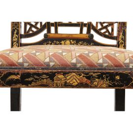 in stile Chippendale dipinto con paesaggi orientali in colore oro e rosso.