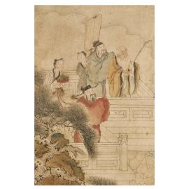 su carta. E’ un regalo per un personaggio anziano, raffigurante tre stelle Fulushou che pregano una divinità femminile che cavalca una fenice. Vicino al mare si trovano le divinità che vengono per dare l’augurio. Due divinità sono posizionate su una barca a forma di albero e altre due stanno su una foglia. Tre personaggi stanno giocando a scacchi e tre personaggi si trovano su un ponte. Presenza di tre saggi, di cui uno che suona uno strumento musicale e due che portano doni. Un personaggio ha un bambino in braccio e due personaggi all’angolo stanno chiacchierando.