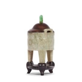 incensiere in giada con coperchio e base in legno. Manico del coperchio in giadeite.