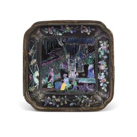 清 十八世纪 漆嵌螺钿人物故事纹方碟 长宽11,7x11,7厘米