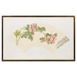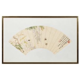 清 十九至二十世纪 花鸟鱼虫扇面一组四件 纸本设色 带框尺幅58,8x36,5厘米