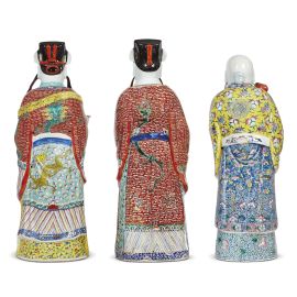 清 十九至二十世纪 粉彩三星像 禄 禄 寿 高66,63,61厘米