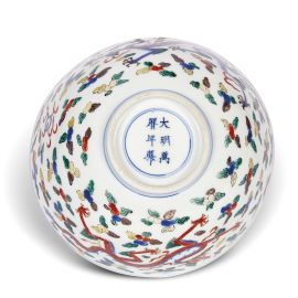 清 十八世纪 五彩龙纹碗 万历底款 直径18,5 厘米