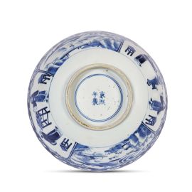 清 十九至二十世纪 青花高仕图纹碗 直径 25,2厘米 高 9,8厘米