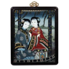 清 十九至二十世纪 玻璃画仕女像一组两件 尺幅 31,2 x 51,5 36,3 x 46,8 厘米