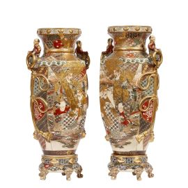 日本 十九世纪 萨摩烧五足狮子瓶两件 高 46,5厘米 底座高 9厘米